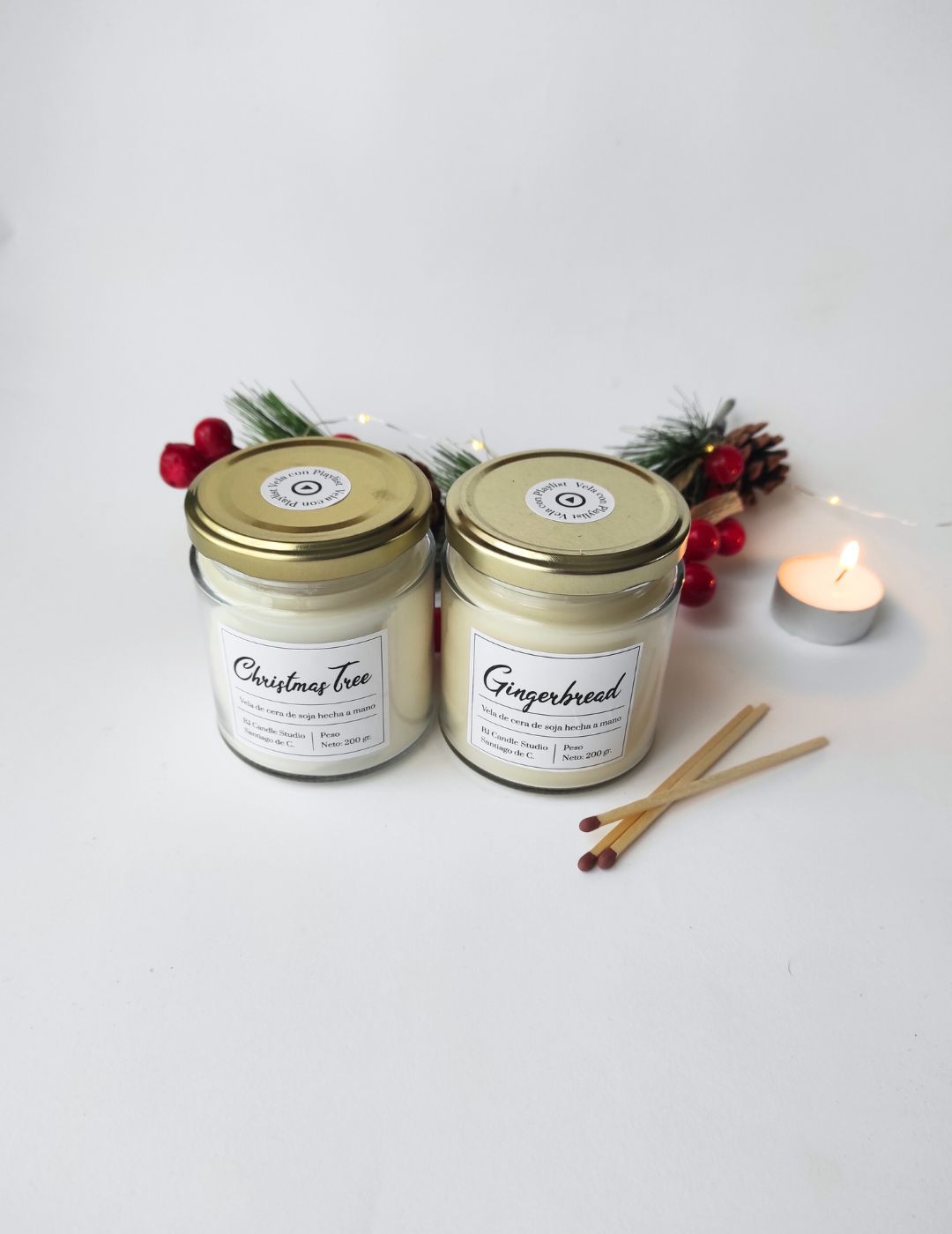 Cada vela está hecha a mano en pequeños lotes en Santiago de Compostela, con cera de soja 100% vegetal, mechas de algodón ecológico y fragancias premium. Además, incluye un QR con una playlist navideña, perfecta para acompañar tus momentos especiales y hacerlos aún másmemorables.